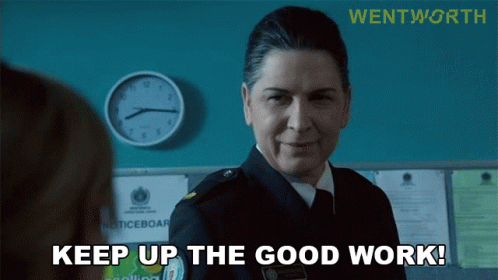 Governor Joan Ferguson delivers a stern 'Keep Up The Good Work!' message in this scene from Wentworth.