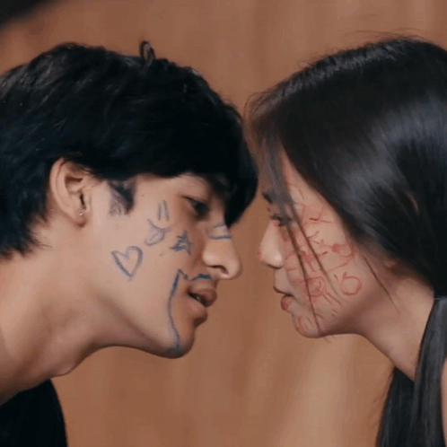 Keifer and Jayjay (Andres Muhlach, Ashtine Olviga) share a romantic kiss with playful drawings on their faces.