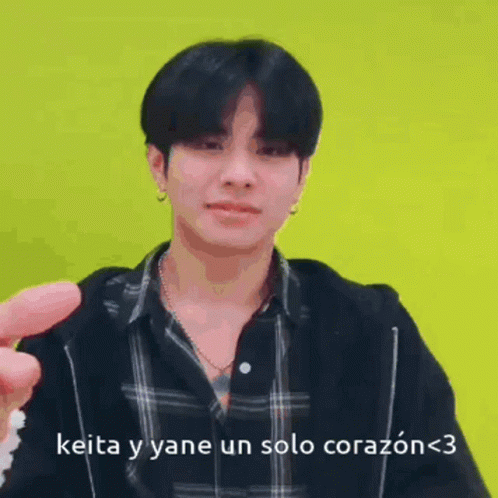 Keita Ciipher from Ciipher makes a heart with his hands, smiling. Caption reads 'keita and yane one heart'.
