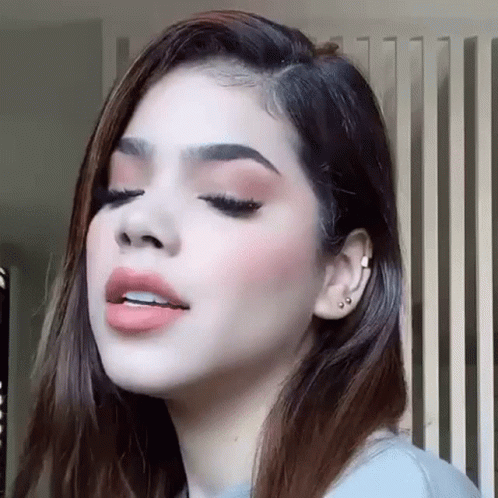Kenia Os with a pensive expression, showcasing her makeup and ear piercings.