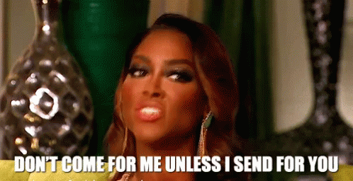 Kenya Moore delivers her iconic line, 'Don't come for me unless I send for you,' with a sassy expression.
