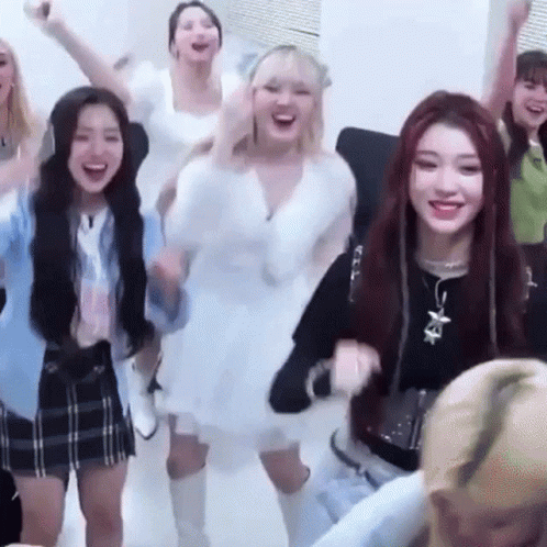 Kep1er members Youngeun, Chaehyun, Yeseo, Xiaoting, and Mashiro dancing energetically and having fun.