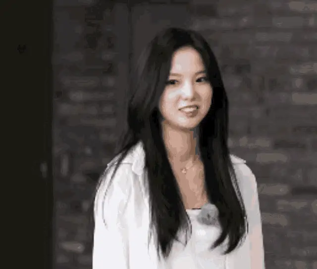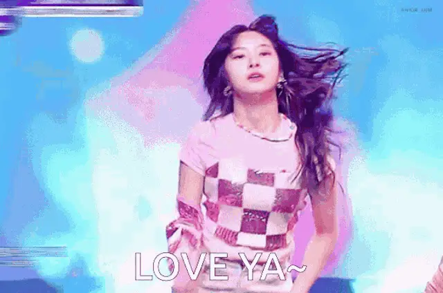 Kep1er's Sakamoto Mashiro flashes a peace sign with a bright smile, showing her cheerful expression.