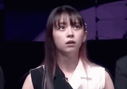Kep1er member Mashiro Sakamoto shows a surprised and confused expression against a dark purple background.