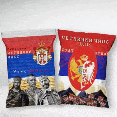 Kerem Bursin smiles while enjoying a snack, with dynamic colorful lighting in the background.