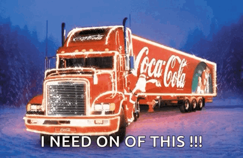 The iconic Coca-Cola Christmas truck, brightly lit and festive, bringing holiday cheer for Christmas and New Year.
