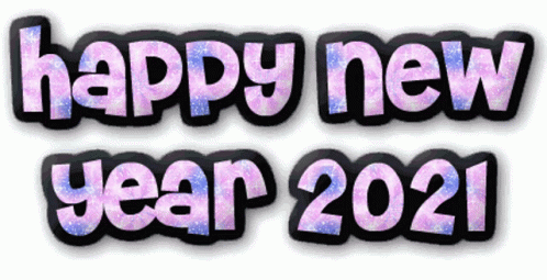 Animated card displaying 'happy new year 2021' in purple and black letters with a glitter effect.