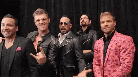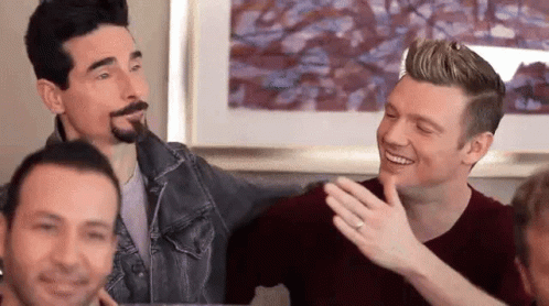 Backstreet Boys members Kevin Richardson and Nick Carter (Kevick) share a warm hug and laugh together.