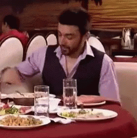 Aashish Chaudhary enjoying a meal at a restaurant, savoring the food from various dishes.