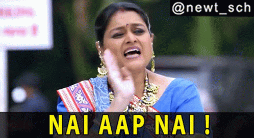 Supriya Pathak as Hansa from Khichdi emphatically says 'Nai Aap Nai!' with a hand gesture.