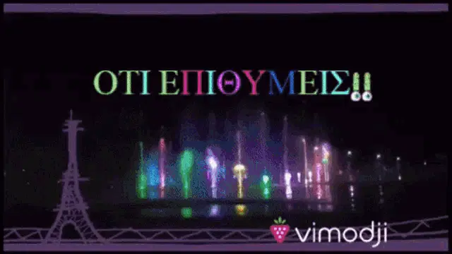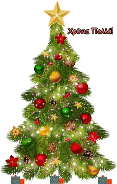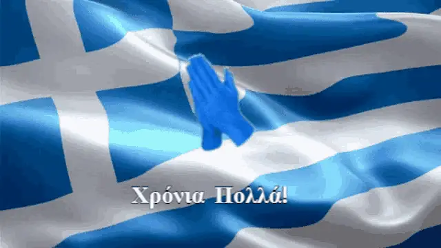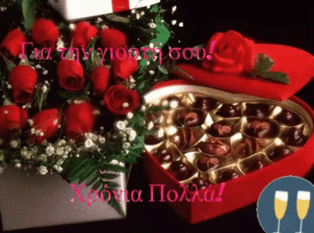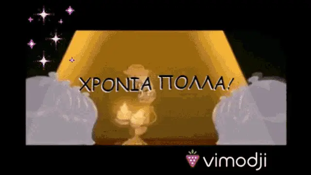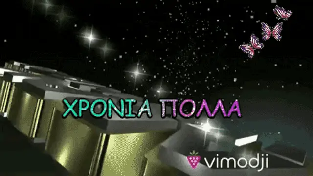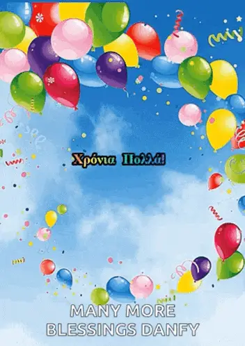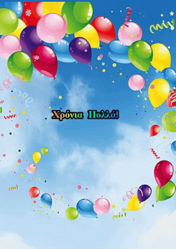 A vibrant greeting card featuring colorful balloons floating in a blue sky, with the Greek phrase 'Happy Birthday!'.