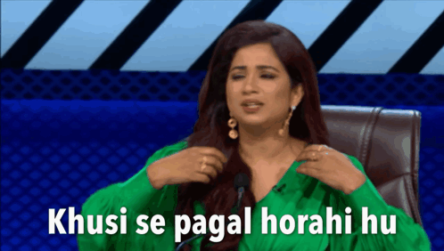 Shreya Ghoshal expresses extreme happiness, saying 'Khusi se pagal horahi hu' while adjusting her hair.