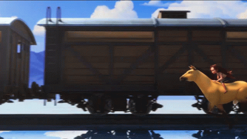 Fortuna Esperanza, voiced by Isabela Merced, rides on the back of a train car in the animated movie Spirit Untamed.