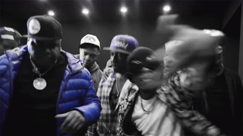 Duke Deuce and a group perform an energetic 'Kick Kick Down' dance, showcasing powerful kicks and hype moves.