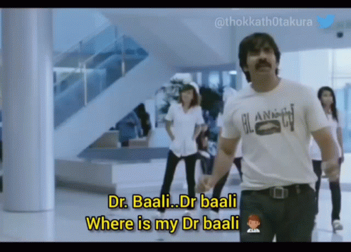 Ravi Teja frantically searches for Dr. Baali, calling out his name in a scene from the Telugu movie Kick.