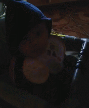 An adorable baby in a blue hat and bib is being fed with a spoon, enjoying a meal.
