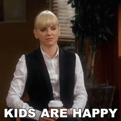 Anna Faris as Christy holds a coffee cup, with the phrase 'Kids Are Happy' visible in the foreground.