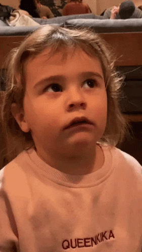 Kika, wearing her 'QUEENKIKA' shirt, looks up with a thoughtful expression, then covers her face.