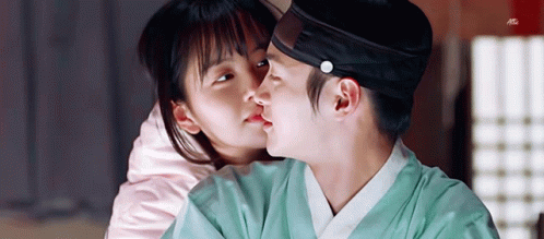 Kim So Hyun shares a tender kiss with a man in traditional attire, from 'The Tale Of Nokdu'.