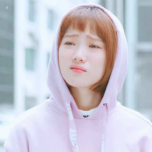 Kimbokjoo looking thoughtful in a pink hoodie, with a slightly sad expression.