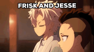 Anime characters Genya Shinazugawa and Sanemi Shinazugawa from Kimetsu No Yaiba, labeled as Frisk and Jesse.
