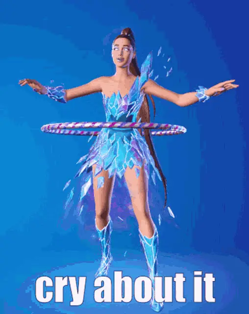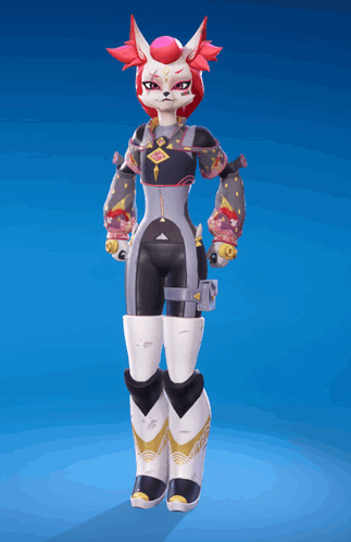 a cartoon character with red hair and white pants is standing in front of a blue background