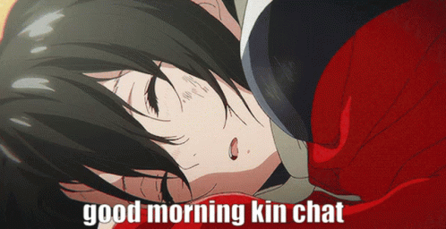 Yuzuru Nishimiya from A Silent Voice wishing 'good morning kin chat' while lying down.