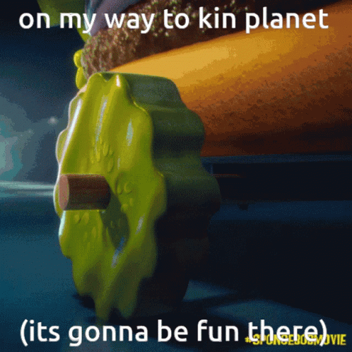 Kin Kinnie embarks on a fun journey to Kin Planet, as seen in the Spongebob Movie, featuring a giant burger.