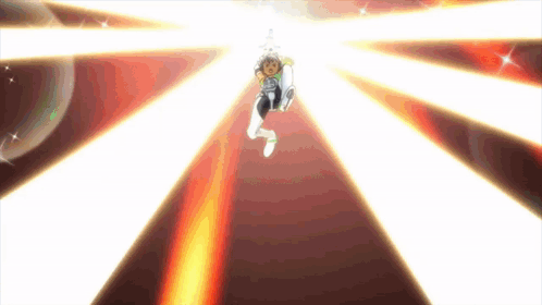 a cartoon character is flying through the air with rays of light behind him