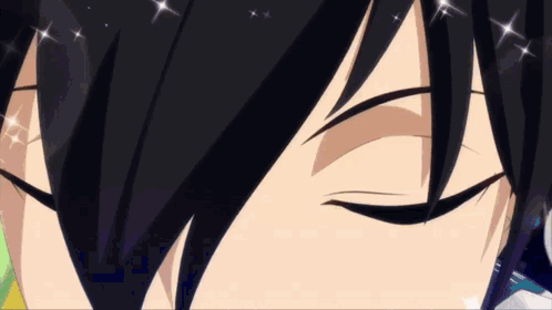 a close up of a person 's face with their eyes closed and sparkles .
