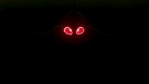 Kinnikuman's Atlantis, a menacing cartoon monster with glowing red eyes and sharp teeth, emerges from the darkness.