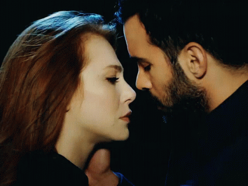 Elçin Sangu and Barış Arduç share an intense, close-up gaze in the Turkish drama Kiralık Aşk.