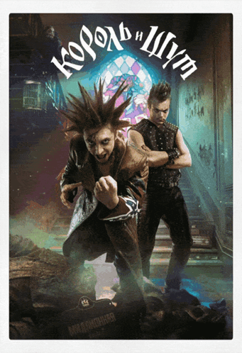Animated poster for the Russian punk rock band Король и Шут (King and Jester), featuring two band members.