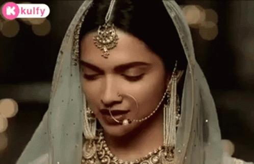 Deepika Padukone as Mastani in Bajirao Mastani, adorned in traditional Indian jewelry and a delicate veil, looking up.