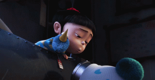 Agnes, voiced by Elsie Fisher, kisses her unicorn toy, leading to a surprised reaction from the Minions.