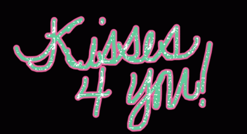 Animated graphic featuring the text "Kisses 4 You" in pink and green with hearts on a black background.