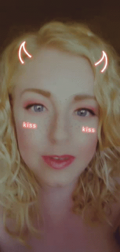 Meli with a 'kiss' filter on her cheeks and glowing devil horns, looking at the camera.