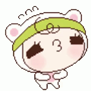 Animated pixel art character making a kissy 'mwah' gesture.