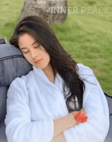 Kisses Delavin finds inner peace, sleeping serenely in a white robe, embodying a calm spirit.