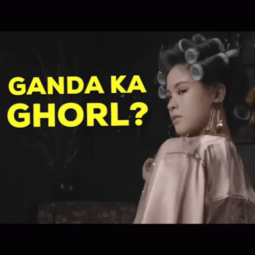 Kisses Delavin with hair curlers, posing next to the text 'GANDA KA GHORL?'