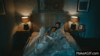 Kivanc and a woman share a cozy hug while lying in bed, enjoying a peaceful moment together.