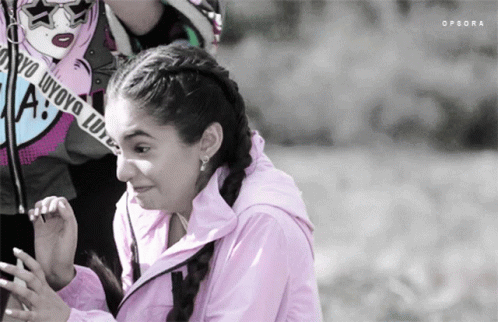 Anushka Sen from Khatron Ke Khiladi 11, wearing a pink jacket, smiles while interacting with another person.