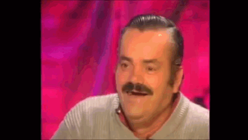 Man with mustache laughing hysterically against a pink background, a popular meme featuring El Risitas.