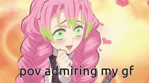 Mitsuri Kanroji from Demon Slayer is depicted as a girlfriend, with text 'pov admiring my gf'.