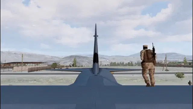 A group of soldiers from CAG in Arma 3 standing in front of a building, holding their rifles.