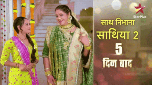 Kokila Ben and another woman in traditional attire promote Saath Nibhana Saathiya 2 on StarPlus.