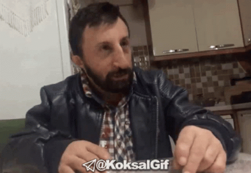 Koksal Koksalbaba gestures and speaks at a table, with Persian captions 'You. Come eat this.'