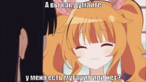 Anime girl Kolyan Korlyan asks if she has a mutation, with wide, surprised eyes.