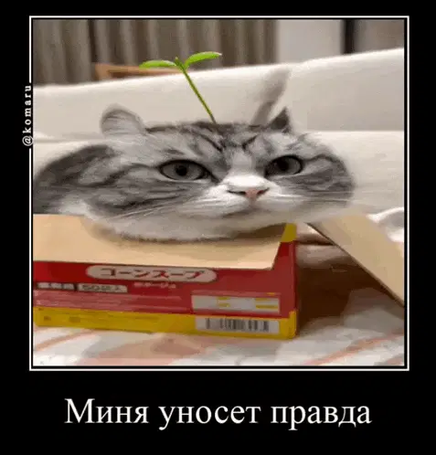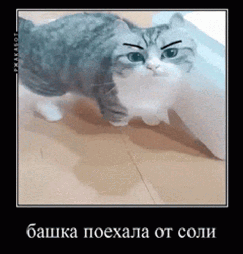 Komaru Cat's expressions change from angry to confused, reflecting the Russian meme 'My head is messed up from salt'.