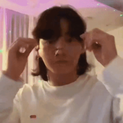 Jungkook adjusts his glasses, looking surprised and shocked.